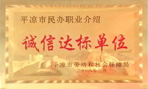 2008年公司職業(yè)介紹所被平?jīng)鍪袆趧雍蜕鐣U暇衷u為“誠信達(dá)標(biāo)單位”;